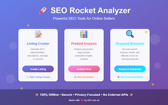 SEO Rocket Analyzer är ett kraftfullt verktyg för SEO, speciellt utformat för onlineförsäljare och marknadsförare. Denna webbläsartillägg erbjuder en rad funktioner som produktlistningsskapare, produktanalysverktyg och avancerad nyckelordsforskning. Med hjälp av dessa verktyg kan användare enkelt optimera sina produktbeskrivningar och öka sin synlighet på marknader. Användare kan snabbt generera SEO-optimerade produktnamn, beskrivningar och taggar, vilket sparar både tid och ansträngning.